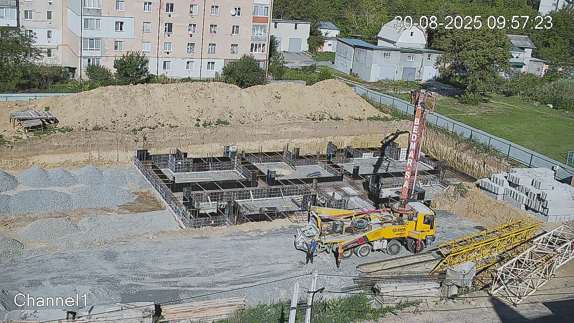 - Прийнято бетон на фундаментну стрічку ПК №1 — фундамент набирає міцність, що є критично важливим для подальших етапів будівництва.