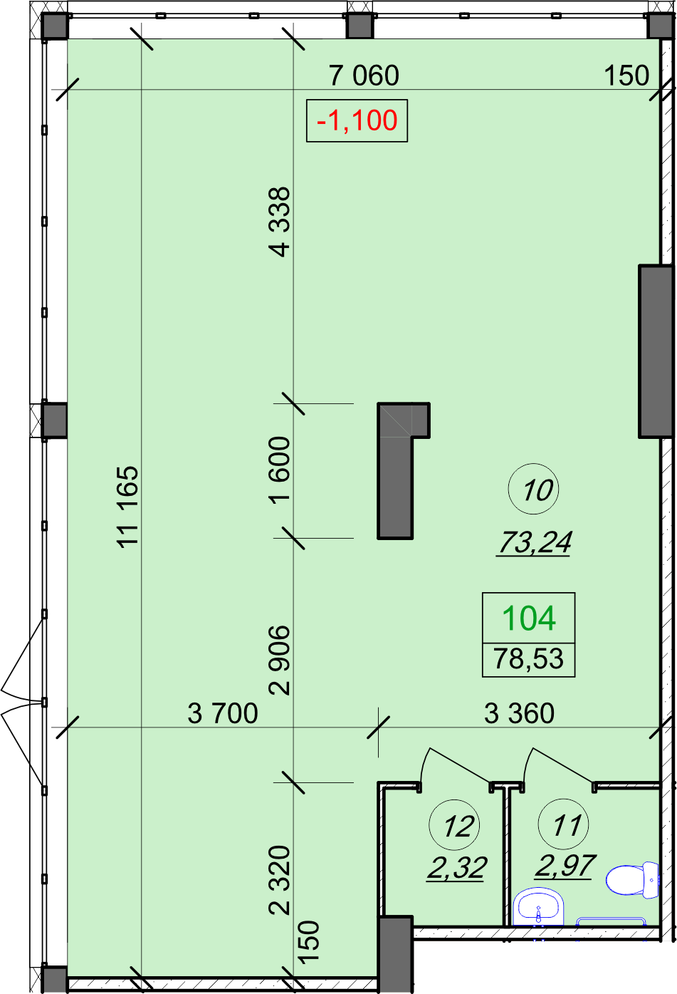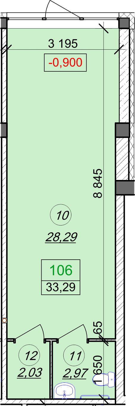 Площа: 33.29 м²