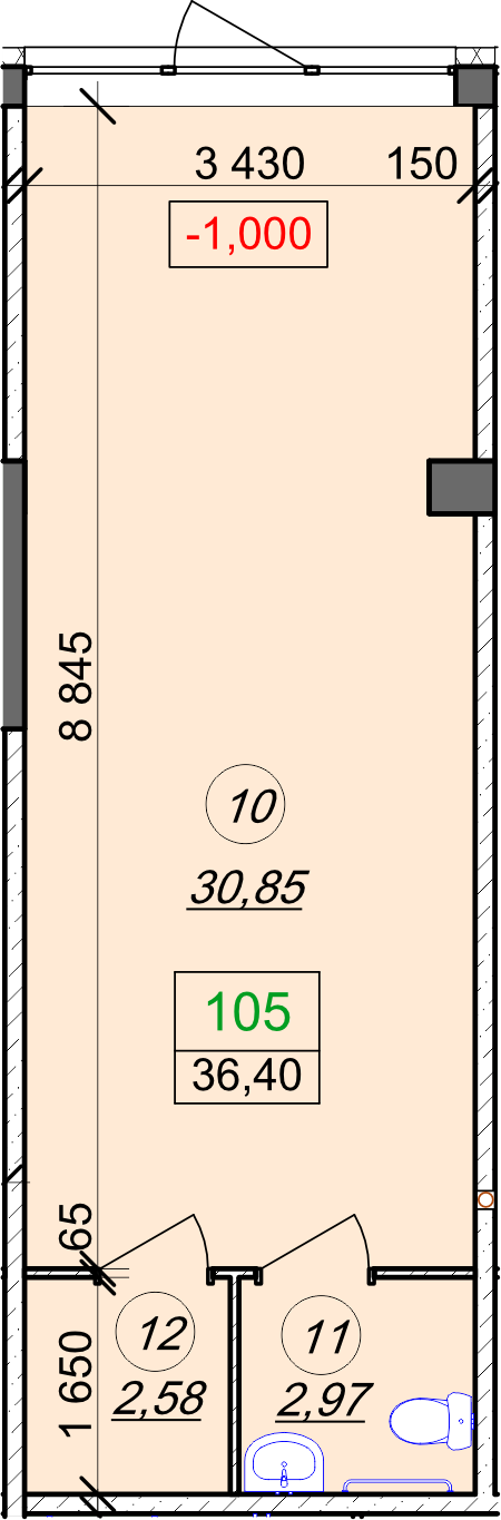 Площа: 22.72 м²